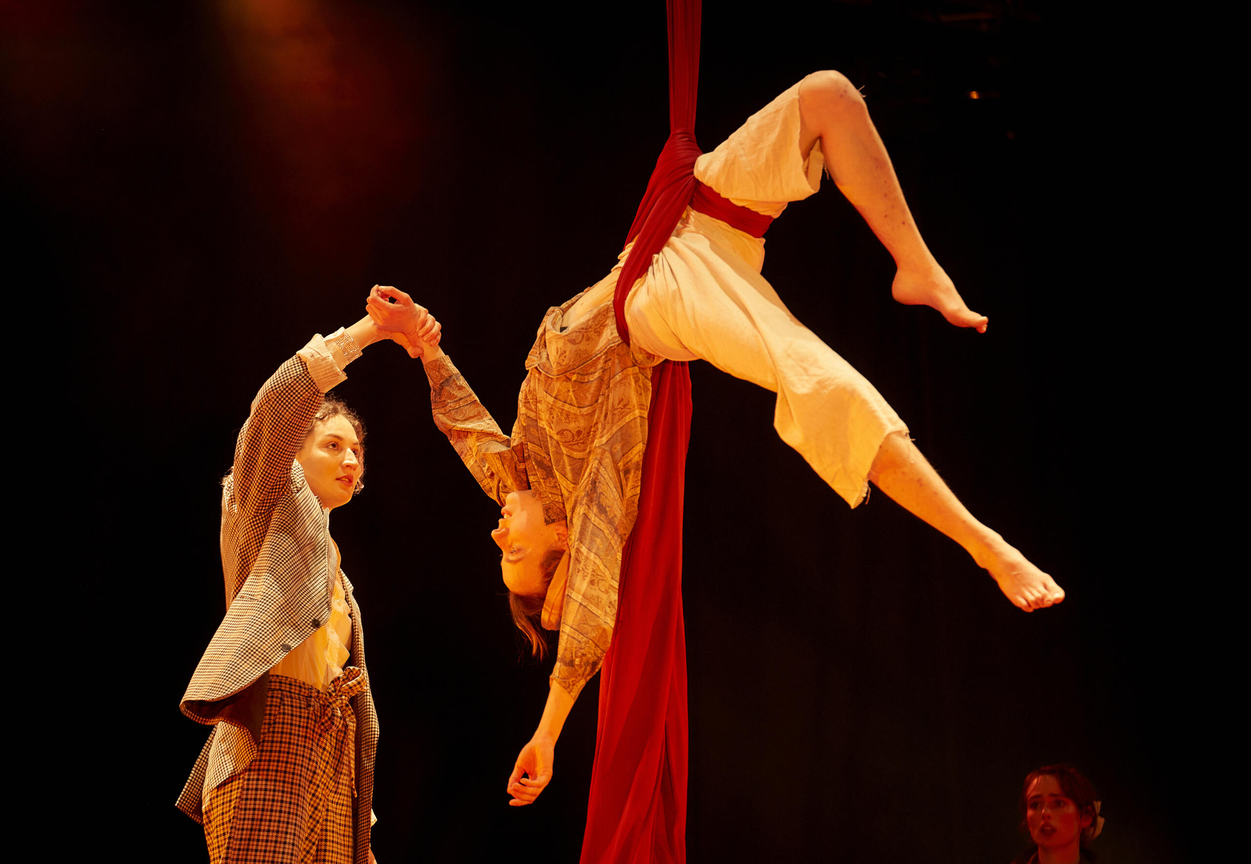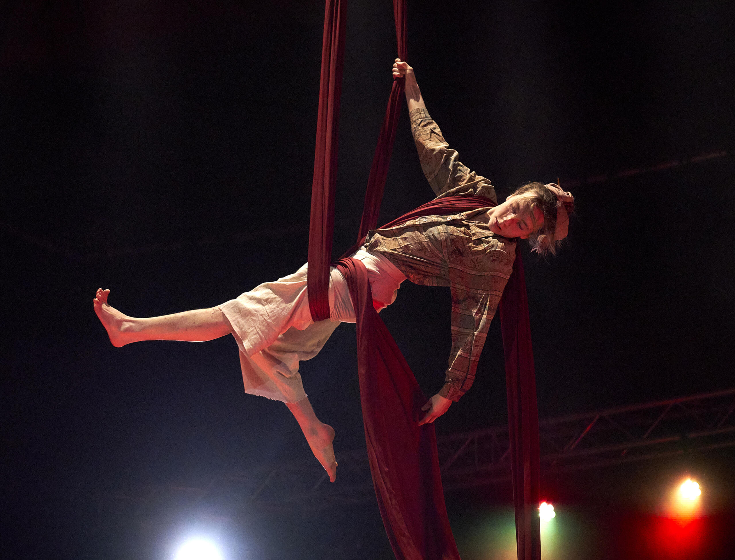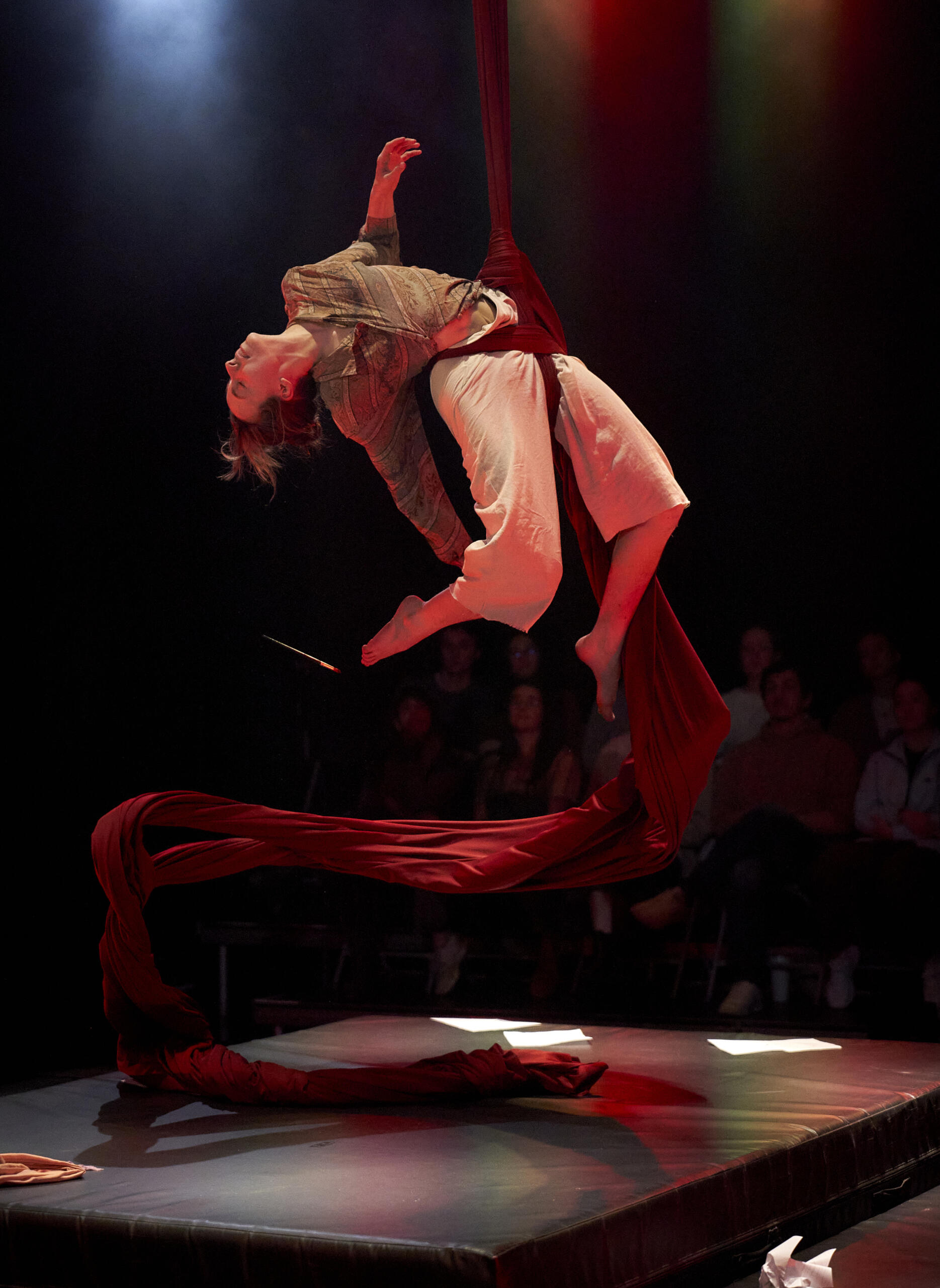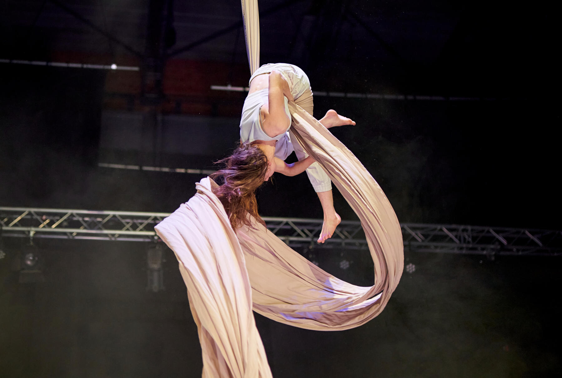 This act is recreating the feeling of waking up from a dream within a dream, not knowing if you are still asleep.An act that combines silks, acrobatics and dance, seeking to entrance the audience and draw them into the dream.